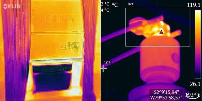 Kamery średniofalowe są używane do wykrywania gazów, takich jak propan, metan i butan (po lewej), podczas gdy kamery długofalowe są używane w większości innych zastosowań (po prawej).