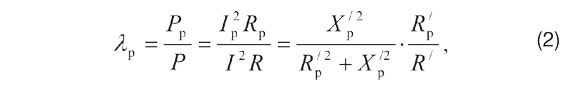 w którym Rp oraz Xp są odpowiednio rezystancją i reaktancją żył powrotnych kabli. Stąd otrzymuje się wzór na współczynnik strat dodatkowych w żyłach powrotnych kabli (ogólnie w ekranach metalicznych kabli), wywołanych przez indukowane prądy: