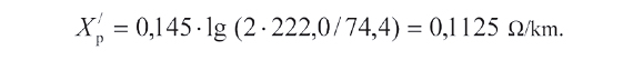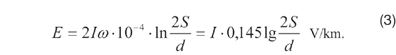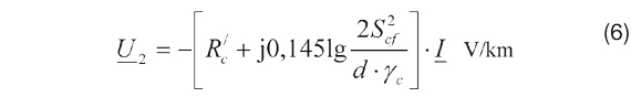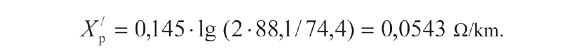 W układzie trójkątnym jest ona obliczana ze wzoru X’p = 0,145·lg(2S/d), w Ω/km, w którym: S – odległość między osiami kabli w mm, d – średnica żyły powrotnej kabla w mm.
