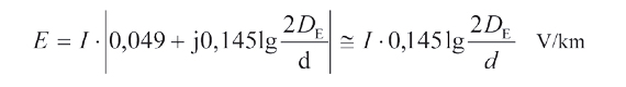 DE = 93,1√ρE – odległość kabla od fikcyjnego przewodu powrotnego znajdującego się w ziemi, w m,