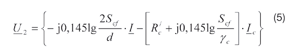 Przyjmując wartości prądów wg ryunku. 6, na podstawie wzoru (5) można obliczyć wartość napięcia indukowanego U2 = 2883 V/km. Jest ona ponad 2 razy mniejsza od SEM indukowanej przy braku kabla ECC. Dalsze zmniejszenie napięcia indukowanego jest możliwe poprzez zastosowanie dwóch przewodów ECC lub zwiększenie ich przekroju.