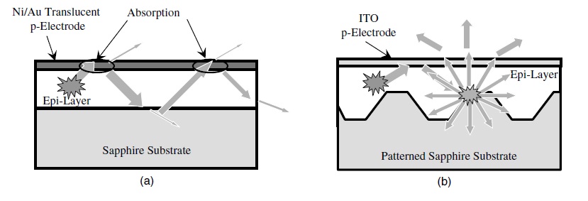 Diody mają wadę polegającą na tym, że elektrody mają skłonności do absorbowania części światła, która mogłaby być emitowana. Aby zredukować tą właściwość badacze użyli tlenku indu cyny jako jednej elektrody a także substratu szafiru w miejscu rozpraszania światła aby ułatwić strumieniowi światła łatwiejsze opuszczenie diody. Zoptymalizowano również napięcie operacyjne diod z 3,08V do 2,8V.