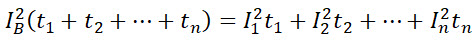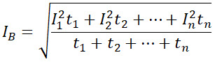 Poszukujemy prądu zastępczego, który powinien wywołać taki sam skutek cieplny, jak wiele różnych wartości prądu obciążenia, które wystąpią w danym przedziale czasu: