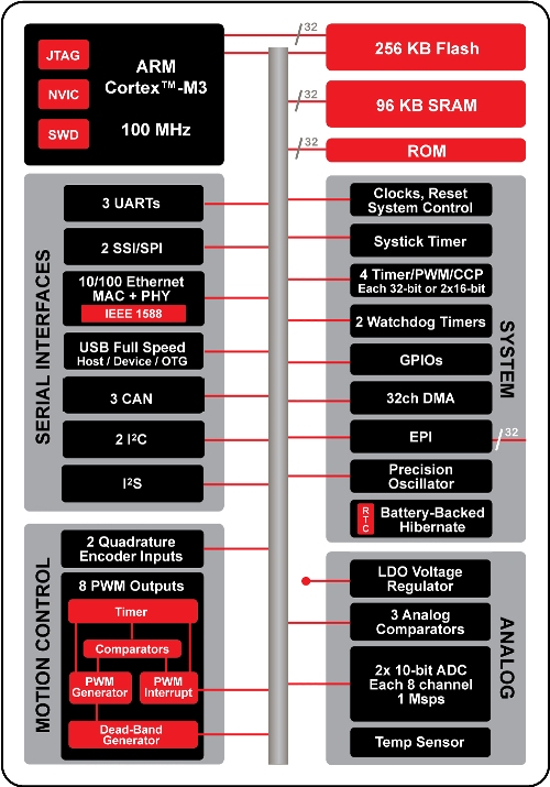 o Seria LM3S9000: 2 nowe mikrokontrolery z interfejsami Ethernet 10/100 MAC+PHY, USB OTG oraz Bosch 2.0 A/B CAN;