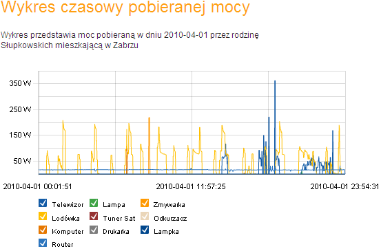 • czasowych, obrazujących jak poszczególne urządzenia pobierały moc w ciągu dnia