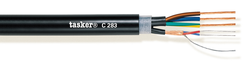 Bez wątpienia najbardziej kompleksowym kablem do instalacji DMX w ofercie Taskera jest hybrydowy C294 DMX. Kabel ten składa się z kabla zasilającego 3×2,5mm² oraz 4 ekranowanych, 2-żyłowych kabli do przesyłania sygnałów sterujących. Impedancja charakterystyczna każdego przewodu sterującego to oczywiście 110Ω, a pole przekroju poprzecznego to 0,22mm². Kable sterujące oprócz oplotu z cynowanych drutów z miedzi beztlenowej o gęstości oplotu 80%, ekranowane są dodatkowo folią aluminiowo-poliestrową, oplatającą każdą parę w 100%. Podobnie jak w serii TSK1038, TSK1039, TSK1040 rolę trzeciego przewodu pełni tutaj połączona z ekranem cynowana linka. Tak samo, jak w opisanych wyżej kablach hybrydowych, każdy kabel sterujący jest numerowany. Kolejną cechą jest umieszczenie we wspólnej izolacji zewnętrznej 4 kabli sterujących oraz kabla zasilającego. Dzięki takiemu rozwiązaniu skraca się czas montażu (nie ma potrzeby grupowania kabli), dlatego kabel Tasker C294 dedykowany jest do kompleksowej obsługi dużej ilości urządzeń w teatrach i na imprezach masowych, a także do stosowania w rozgłośniach radiowych i stacjach telewizyjnych.