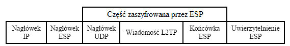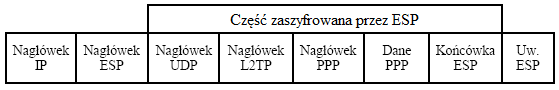 W celu zapewnienia uwierzytelnienia, poufności, integralności danych i ochrony przed powtórzeniami, protokół L2TP stosuje się razem z IPSec. Zanim powstanie tunel L2TP, pomiędzy dwoma urządzeniami LCCE musi być ustanowiony tunel IPSec. Dopiero wtedy dane L2TP mogą być enkapsulowane w ESP. Budowę pakietów L2TP/IPSec pokazano na rysunkach 4 i 5.