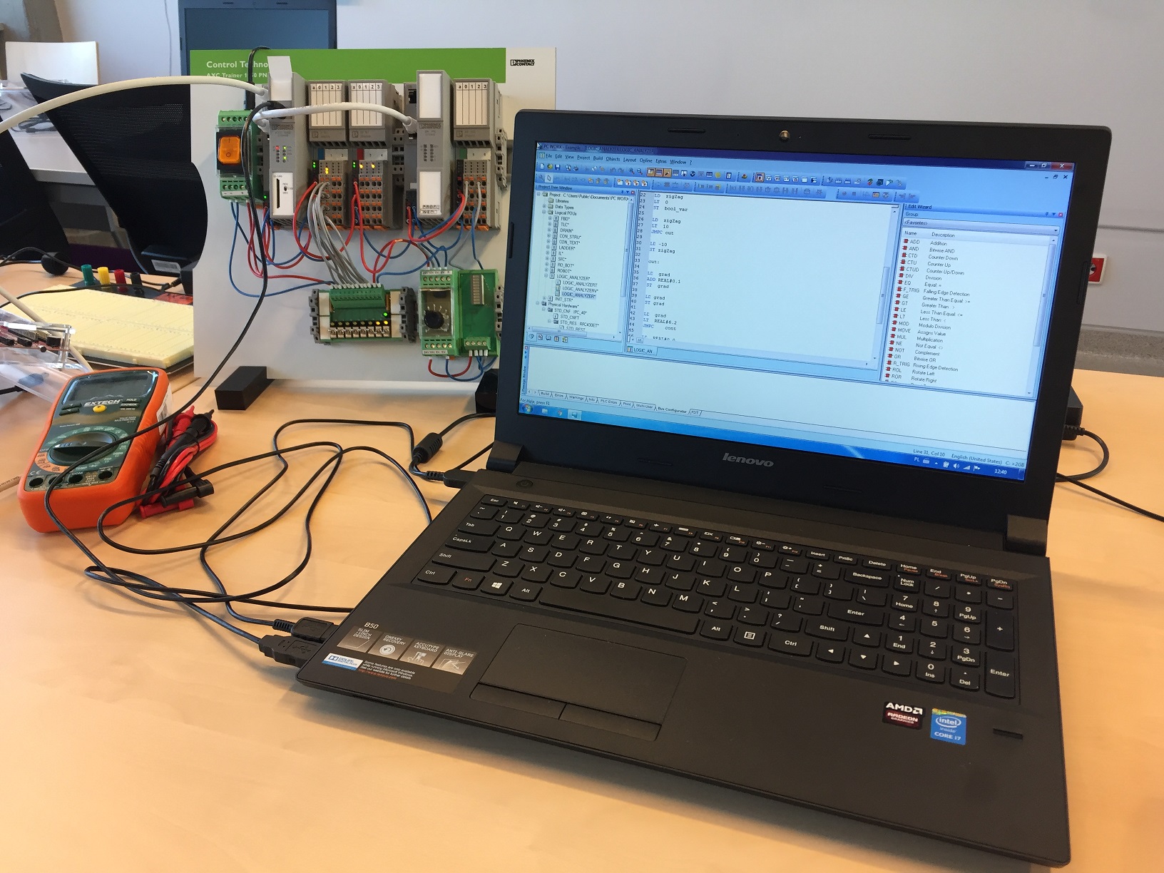 Obecnie pracownia została wyposażona w sześć kompletnych zestawów, zawierających zestaw startowy AXC 1050 PN ze sterownikiem AXC 1050, złączem magistrali AXL F BK PN, modułami I/O AXL F DI/DO 16, zasilaczem, oprogramowaniem PC Worx z szybkim uruchomieniem i innymi akcesoriami, a także zarządzalny switch Ethernetowy FL Switch SMCS 8GT, umożliwiający zbudowanie redundantnych i nadających się do diagnostyki sieci Ethernet.