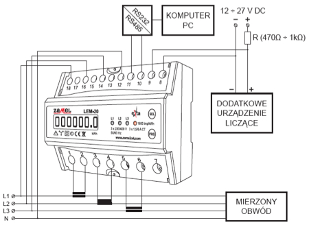 Dodatkową funkcjonalnością licznika energii elektrycznej LEM-20 jest wyjście impulsowe, które umożliwia zdalne przesłanie informacji o bieżącym zużyciu energii w wybranym obwodzie do innego, zewnętrznego systemu liczącego. W zależności od ilości wygenerowanych impulsów, zliczane jest zużycie energii elektrycznej (stała to 1600 impulsów na 1 kWh).