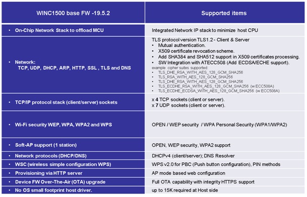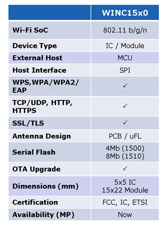 Najważniejsze cechy kontrolerów sieciowych ATWINC15x0 zebrane zostały w poniższej tabeli: