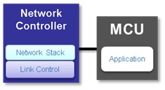 Kontrolery sieciowe, a więc także układy z serii ATWINC15x0, współpracują z zewnętrznym mikrokontrolerem, który jest przede wszystkim odpowiedzialny za obsługę samej aplikacji. Mikrokontroler będący elementem nadrzędnym – „MASTER” – komunikuje się z kontrolerem sieciowym za pomocą któregoś z powszechnie używanych interfejsów (tutaj – SPI). Główną funkcją kontrolera sieciowego (modułu) jest obsługa niższych warstw modelu sieciowego OSI, czyli konwersja przesyłanych danych do postaci umożliwiającej ich transmisję w sieciach bezprzewodowych (tutaj konkretnie w sieci Wi-Fi). Właśnie w tym celu w modułach serii ATWINC15x0 została zaimplementowana obsługa protokołu (stosu) TCP/IP oraz warstwy fizycznej (link control). W ten sposób moc obliczeniowa mikrokontrolera jest uwolniona do obsługi samej aplikacji. Pozwala to na przyłączanie do sieci Wi-Fi urządzeń z relatywnie prostymi mikrokontrolerami (np. 16-bitowymi). Schemat blokowy takiego modelu współpracy przedstawiony został na Rys.1.