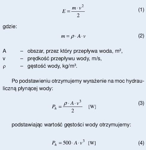 ze wzoru (3) moc hydrauliczna płynącej wody zależy od powierzchni obszaru, przez który przepływa woda, a wielkość ta jest ograniczona względami technicznymi, głębokością rzeki