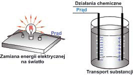 Rys. 2. Działania świetlne i elektrochemiczne prądu