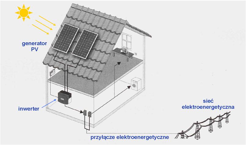 W wyniku zachodzącej przemiany powstaje energia elektryczna w postaci prądu stałego, który po zamianie na zmienny, może zostać wykorzystany w instalacji sieciowej.