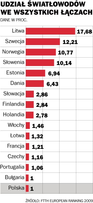 Jeszcze jesienią 2009 wiceminister infrastruktury Magdalena Gaj zapewniała, że rząd przygotowuje ustawę, mówiącą o tym, że każdy nowy budynek wielorodzinny będzie musiał zostać wyposażony w sieć światłowodową. Miał to być milowy krok przybliżający Polskę do europejskich standardów. Teraz okazuje się, że ustawa takiego zapisu nie zawiera.