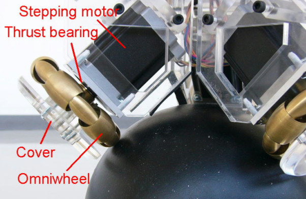 Mechanizm odpowiedzialny za ruch opiera się o trzy wielokierunkowe koła zaprojektowane w Japońskim instytucie R&D RIKEN. Do zasilania kół naukowcy wybrali kontroler krokowy i silnik NIDEC. W efekcie uzyskano dokładność 0,225 stopnia/krok co powoduje, że obracanie się kuli jest bardzo płynne.