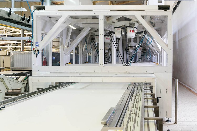 System dostarczony do Tago wykorzystuje 12 robotów ABB typu delta FlexPicker IRB 360, które pobierają produkty bezpośrednio z przenośnika taśmowego zaraz za tunelem chłodzącym.
