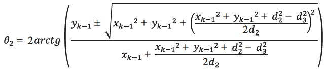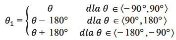 Kąt obrotu pierwszego przegubu θ1 dany jest wzorem: