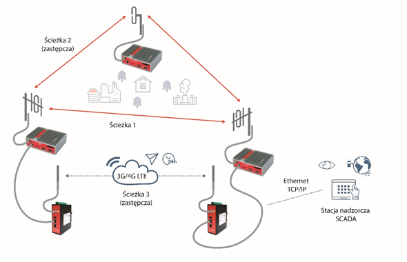Znakomity przykład redundantnej, hybrydowej sieci komunikacji bezprzewodowej tworzą radiomodemy RipEX w zestawieniu z routerami GSM M!DGE.